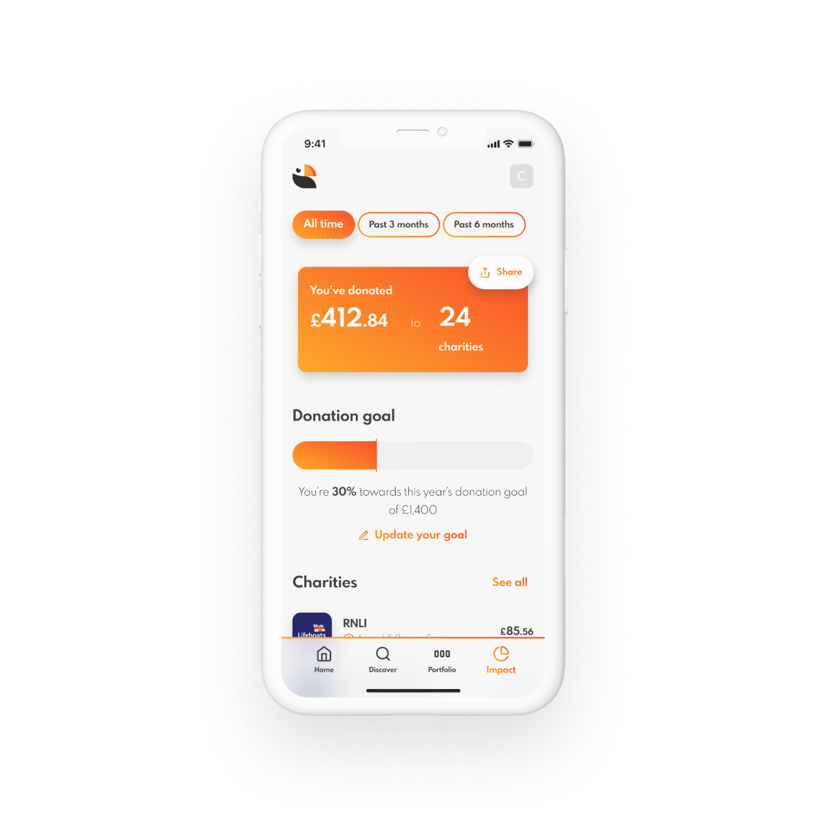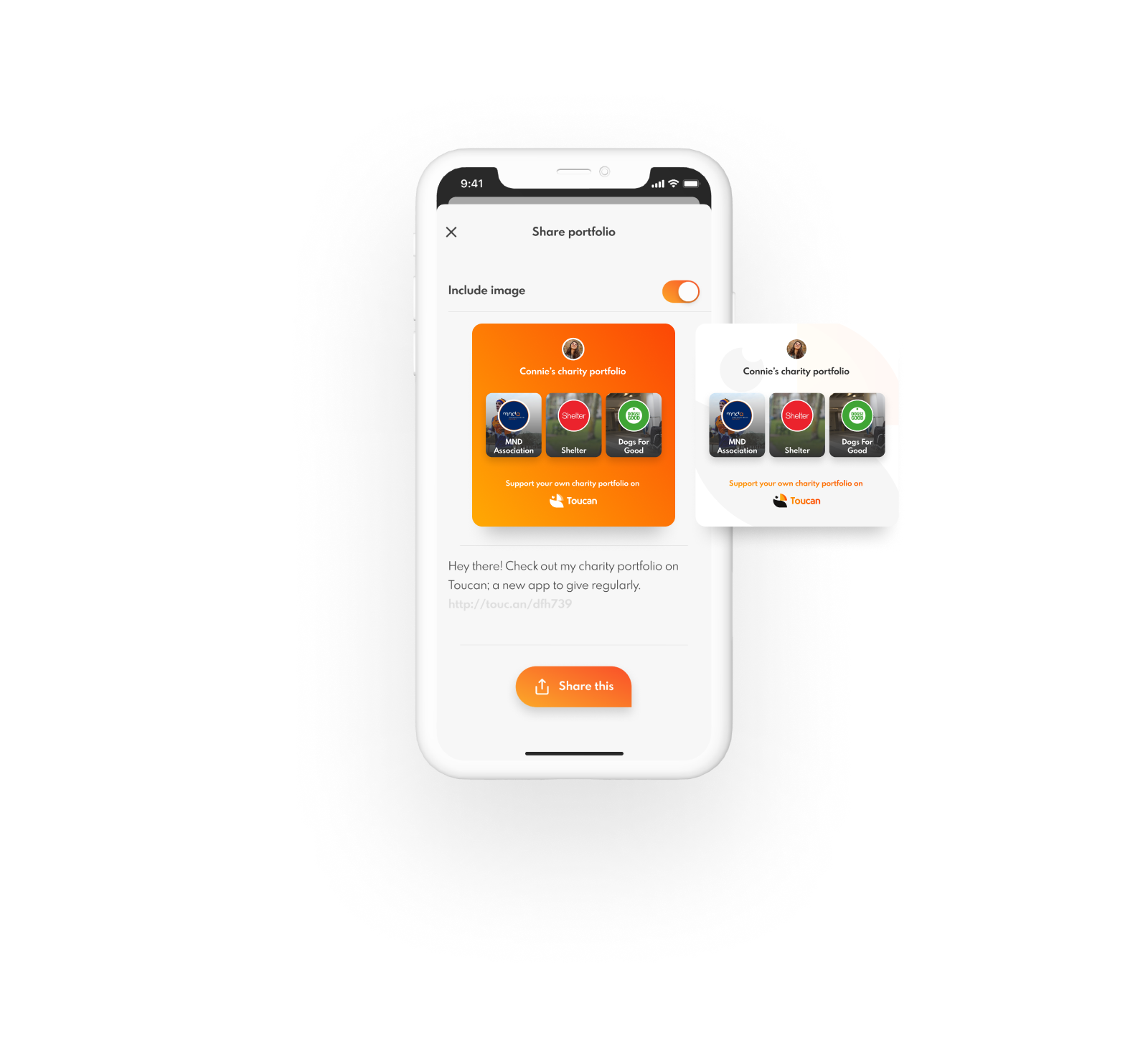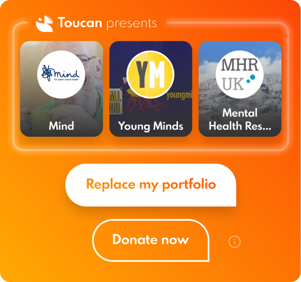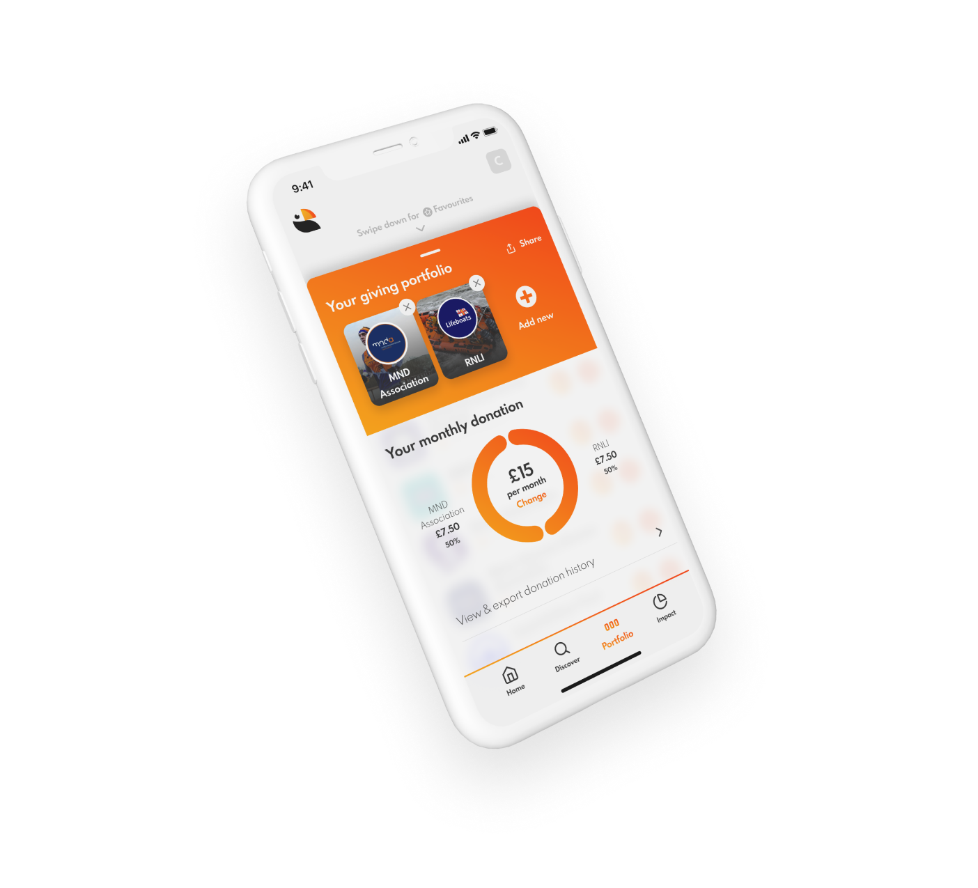 Monthly donations to your favourite charities. Build your giving portfolio & split a monthly donation between the ones you care about most. Watch your impact grow and share your goodwill. It’s simple. It’s flexible. It’s Toucan.